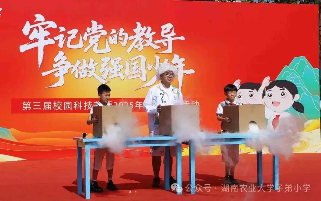 师生同台表演《科学魔法秀》,用趣味实验演绎科学魅力,为全校师生带来一场别开生面的科普盛宴。空气大炮、气球风火轮、热气球升空、泡泡隧道……不仅向同学们展示了科学实验的趣味性,带领同学们见证了科学的奇迹,更激发了大家对科学探索的热情。