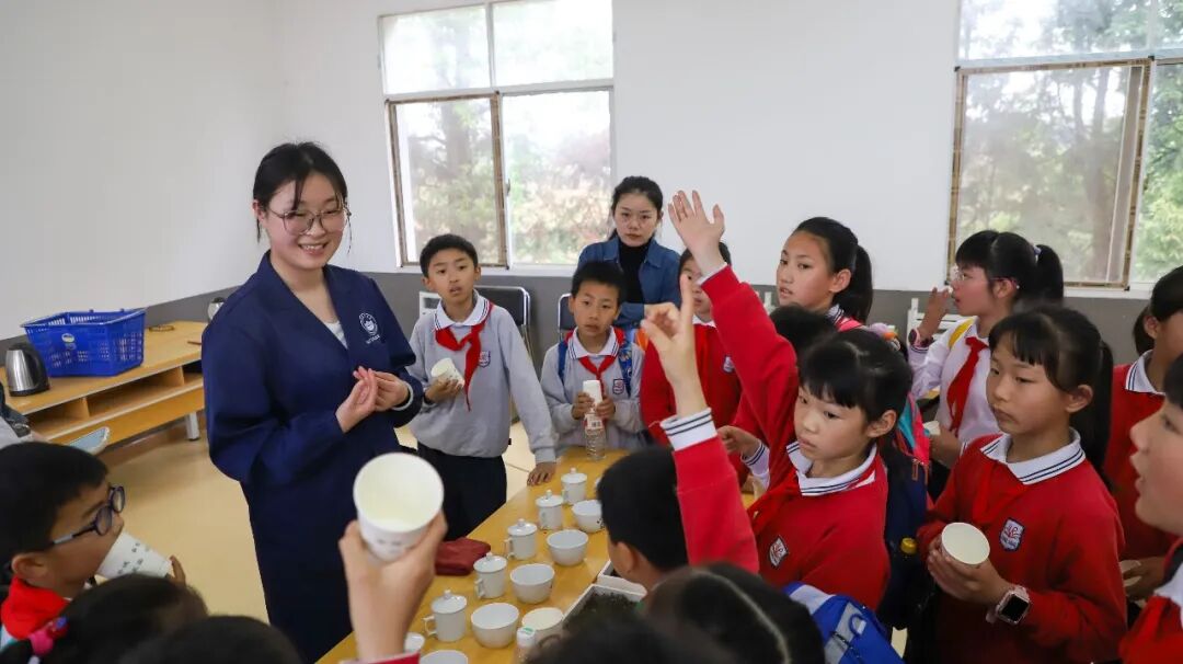 一芽一叶一抹香,一人一篓采茶忙,为了让学生了解茶的起源及自然知识,感受传承千年的中国茶文化,近日,湖南农业大学子弟小学组织二至五年级共23名少先队员去往长安基地,参加现代农业科教示范园“大中小”融合科学教育实践活动。