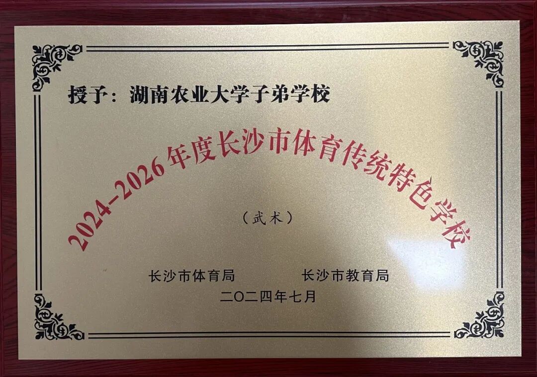 热烈祝贺湖南农业大学子弟小学被长沙市体育局与长沙市教育局联合授予“2024—2026年度长沙市体育传统特色学校”的荣誉!
